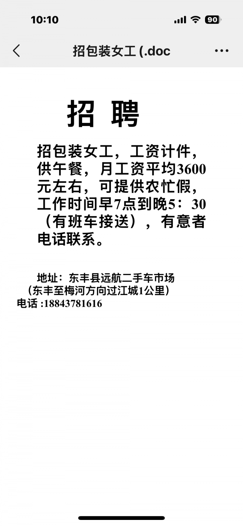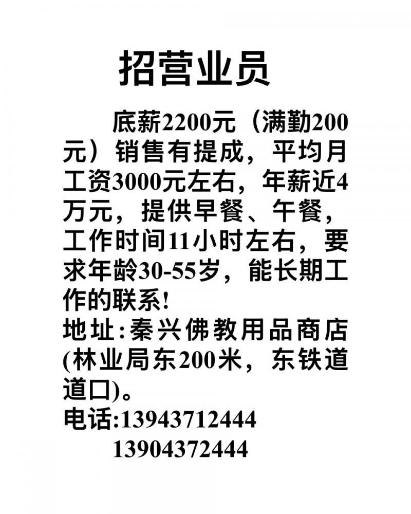 招聘營業員男工、計件女工